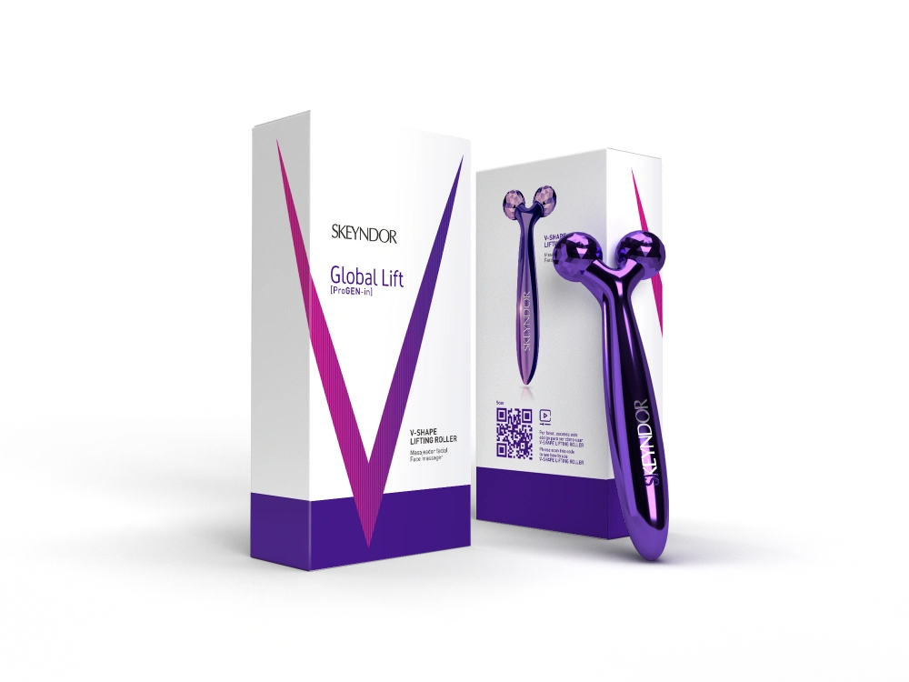 Innowacyjny masażer w kształcie litery V, który wspomaga działanie produktów Global Lift. Ułatwia penetrację składników aktywnych, poprawia mikrokrążenie i modeluje owal twarzy.